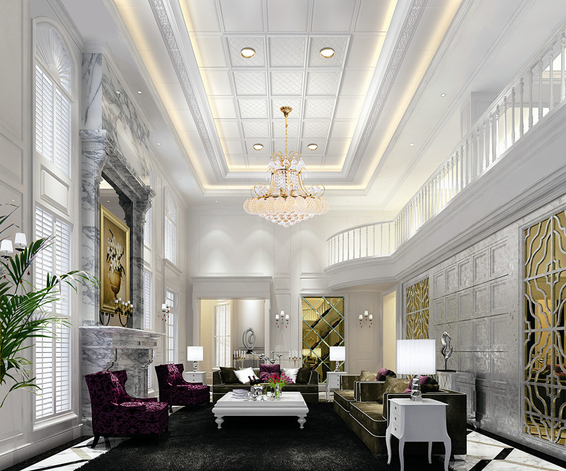 大面積白色的客廳吊頂布局使空間顯得簡約大氣。層層遞進的躍層造型,有助于實現(xiàn)輕松、隨意的生活方式。中央?yún)^(qū)域帶有精美紋飾的板材與燈帶的點綴,增添了空間的美感與情調(diào),又豐富了客廳的藝術(shù)內(nèi)涵。
