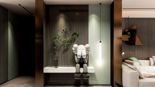 當(dāng)?shù)蹴斉c空間完美融合,便賦予了空間美的想象。大尺寸扣板吊頂,利用藝術(shù)性的設(shè)計(jì)語言塑造出空間的高級(jí)感。